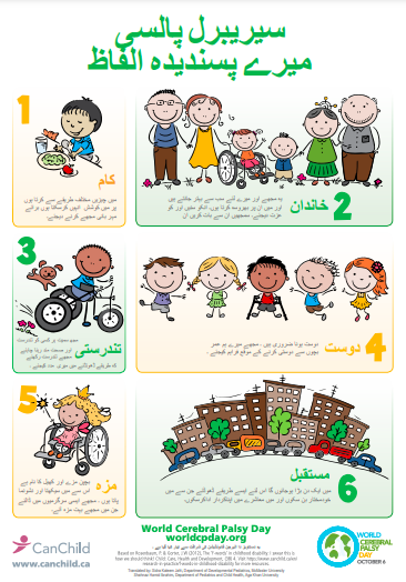 The World Cerebral Palsy Day (October 6) Favourite Words Poster is available in the following languages: